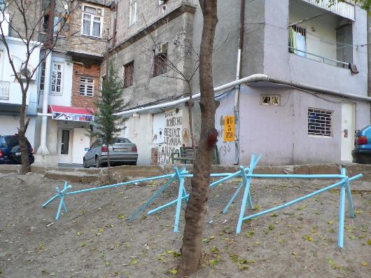 A sculpture by Tobias Madison/Kaspar Müller for Sculptures for a Public Space, Corner Atoneli Str. / Khazina Str., Tbilisi
