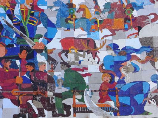 Detail of the monument for the Georgian-Russian friendship built in Gudauri the early 1980s